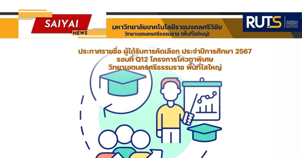 ประกาศรายชื่อ ผู้ได้รับการคัดเลือก ประจำปีการศึกษา 2567 รอบที่ Q12 โครงการโควตาพิเศษ วิทยาเขตนครศรีธรรมราช พื้นที่ไสใหญ่