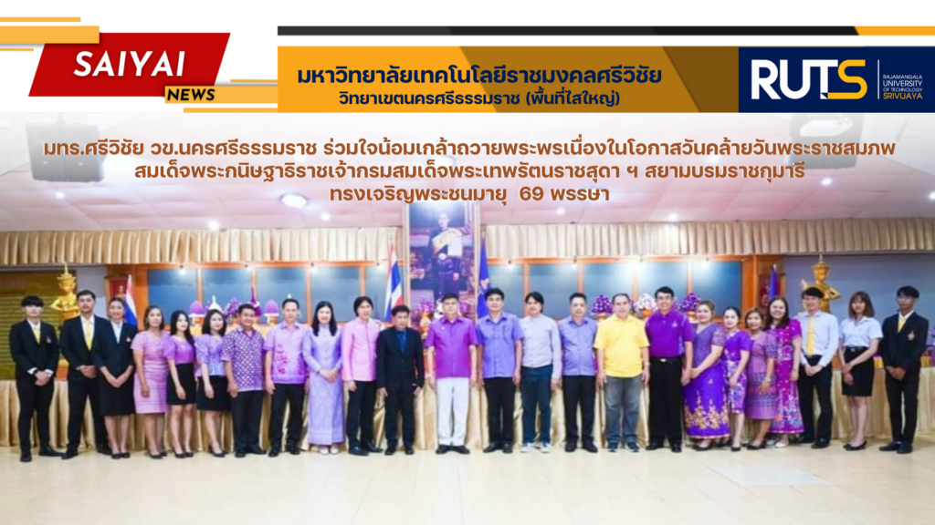 มทร.ศรีวิชัย วข.นครศรีธรรมราช ร่วมใจน้อมเกล้าถวายพระพรเนื่องในโอกาสวันคล้ายวันพระราชสมภพสมเด็จพระกนิษฐาธิราชเจ้ากรมสมเด็จพระเทพรัตนราชสุดา ฯ สยามบรมราชกุมารี ทรงเจริญพระชนมายุ 69 พรรษา