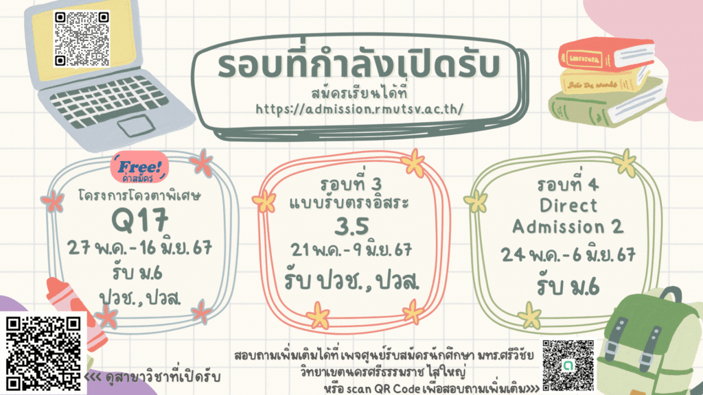 ติดตามข่าวสารต่าง ๆ ได้ที่ https://saiyai.rmutsv.ac.th/admission
