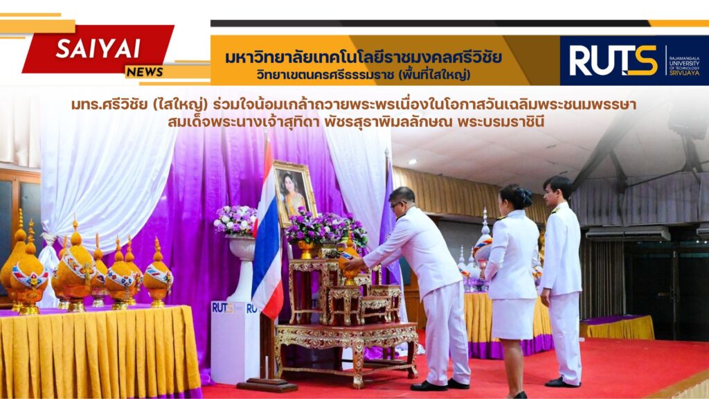 มทร.ศรีวิชัย (ไสใหญ่) ร่วมใจน้อมเกล้าถวายพระพรเนื่องในโอกาสวันเฉลิมพระชนมพรรษาสมเด็จพระนางเจ้าสุทิดาพัชรสุธาพิมลลักษณพระบรมราชินี