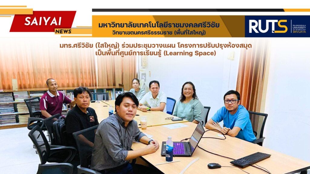 ผู้ช่วยศาสตราจารย์ วิทยากร ฤทธิมนตรี ผู้อำนวยการสำนักงานวิทยาเขตนครศรีธรรมราช พร้อมด้วย นางรัตนา หยงสตาร์ หัวหน้างานบริการการศึกษา และ บุคลากร ร่วมประชุมวางแผน โครงการปรับปรุงห้องสมุดเป็นพื้นที่ศูนย์การเรียนรู้ (Learning Space) เพื่อพัฒนาศักยภาพในการเรียนการสอน ปรับปรุงห้องเรียน, ห้องประชุม พื้นที่เรียนรู้ต่าง ๆ ที่มีวัสดุอุปกรณ์เทคโนโลยีที่ทันสมัย เข้ามาขับเคลื่อนให้เกิดการเรียนรู้อย่างต่อเนื่อง อีกทั้งยังอำนวยความสะดวกแก่ผู้เรียน และผู้สอน โดยผู้เรียนและผู้สอนได้เรียนรู้ด้วยเทคโนโลยีที่ทันสมัย ส่งผลให้มีผลสัมฤทธิ์ทางการเรียนที่สูงขึ้น ณ ห้องสมุด มหาวิทยาลัยเทคโนโลยีราชมงคลศรีวิชัย วิทยาเขตนครศรีธรรมราช (พื้นที่ไสใหญ่)