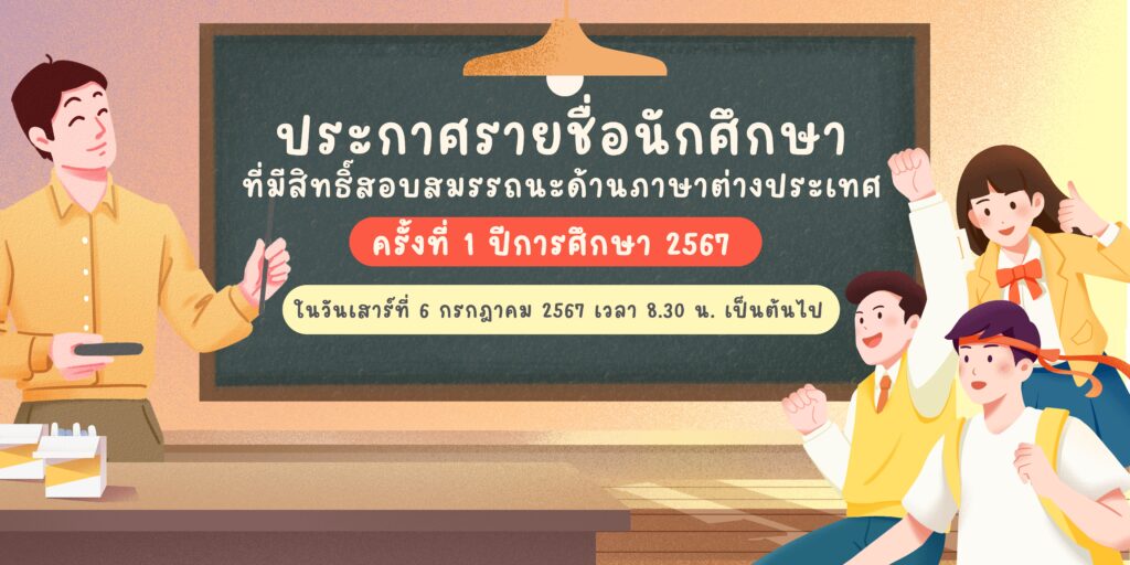 ประกาศรายชื่อนักศึกษาที่มีสิทธิ์สอบการทดสอบสมรรถนะทางด้านภาษาต่างประเทศ ครั้งที่ 1/2567 ในวันเสาร์ที่ 6 กรกฎาคม 2567