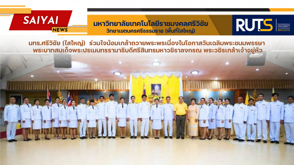 มทร.ศรีวิชัย (ไสใหญ่) ร่วมใจน้อมเกล้าถวายพระพรเนื่องในโอกาสวันเฉลิมพระชนมพรรษา พระบาทสมเด็จพระปรเมนทรรามาธิบดีศรีสินทรมหาวชิราลงกรณ พระวชิรเกล้าเจ้าอยู่หัว
