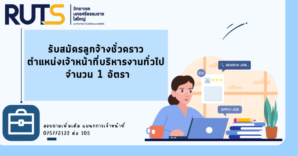 มหาวิทยาลัยเทคโนโลยีราชมงคลศรีวิชัย วิทยาเขตนครศรีธรรมราช พื้นไสใหญ่ รับสมัครลูกจ้างชั่วคราว ตำแหน่งเจ้าหน้าที่บริหารงานทั่วไป จำนวน 1 อัตรา