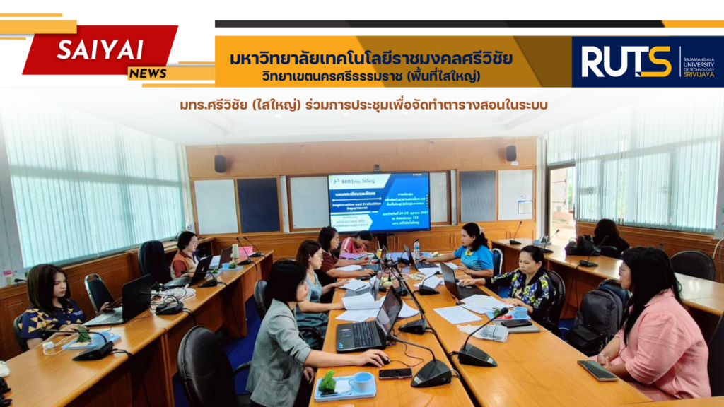 วันที่ 24 ตุลาคม 2567 นางสาวอุมาภรณ์ กรีโส หัวหน้าสำนักงานผู้อำนวยการ ให้เกียรติเป็นวิทยากรชี้แจงการจัดทำตารางสอนในระบบให้แก่ผู้เข้าร่วมประชุม ซึ่งเป็นบุคลากรจากพื้นที่ไสใหญ่ พื้นที่ทุ่งใหญ่ และพื้นที่ขนอม ใน ระหว่างวันที่ 24 – 26 ตุลาคม 2567 ณ ห้องประชุม 331 อาคาร 3 ชั้น 3 สำนักงานวิทยาเขตนครศรีธรรมราช พื้นที่ไสใหญ่ โดยได้รับการต้อนรับจาก ผู้ช่วยศาสตราจารย์ ดร.อวยพร วงศ์กูล รักษาราชการแทนผู้อำนวยการ สำนักงานวิทยาเขตนครศรีธรรมราช