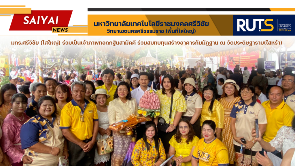วันที่ 12 พฤศจิกายน 2567 ผู้ช่วยศาสตราจารย์ ดร.ขวัญหทัย ใจเปี่ยม รองอธิการบดีประจำวิทยาเขตนครศรีธรรมราช พร้อมด้วยคณะผู้บริหารและบุคลากร พื้นที่ไสใหญ่และพื้นที่ทุ่งใหญ่ ร่วมเป็นเจ้าภาพทอดกฐินสามัคคี ร่วมสมทบทุนสร้างอาคารกัมมัฏฐาน ณ วัดประดิษฐาราม(ไสหร้า) หมู่ที่ 1 ตำบลบางรูป อำเภอทุ่งใหญ่ จังหวัดนครศรีธรรมราช
