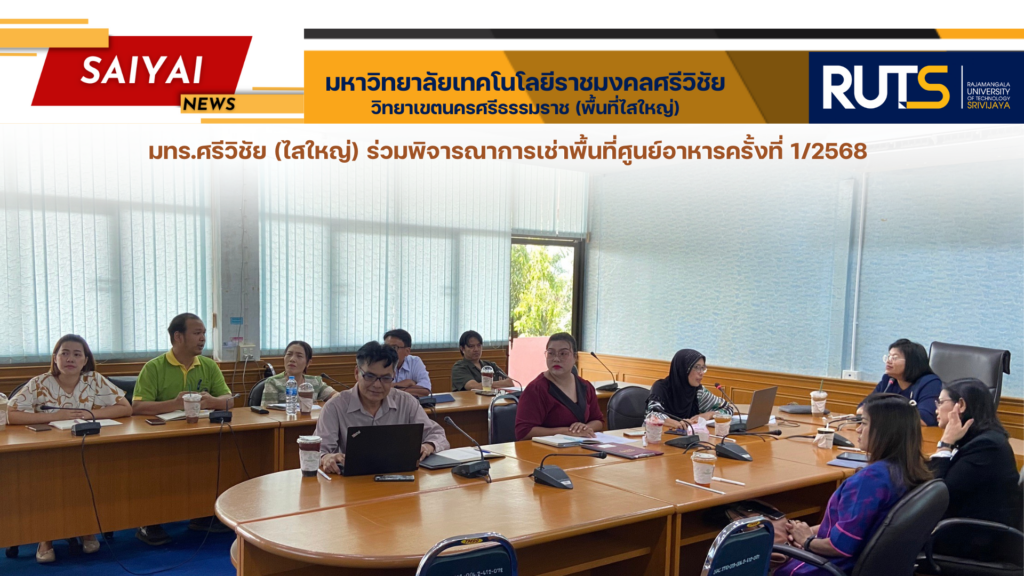 วันที่ 8 มกราคม 2568 ผู้ช่วยศาสตราจารย์ ดร.ขวัญหทัย ใจเปี่ยม รองอธิการบดีประจำวิทยาเขตนครศรีธรรมราช ให้เกียรติเป็นประธานการพิจารณาการเช่าพื้นที่ศูนย์อาหารครั้งที่ 1/2568 โดยมีคณะผู้บริหาร บุคลากรที่เกี่ยวข้อง เข้าร่วมประชุม ณ ห้องประชุม 331 อาคาร 3 ชั้น 3 วิทยาเขตนครศรีธรรมราช พื้นที่ไสใหญ่