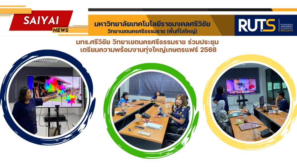 วันที่ 23 มกราคม 2568 มหาวิทยาลัยเทคโนโลยีราชมงคลศรีวิชัย วิทยาเขตนครศรีธรรมราช (พื้นที่ไสใหญ่, พื้นที่ทุ่งใหญ่) ร่วมประชุมเตรียมความพร้อม งานทุ่งใหญ่เกษตรแฟร์ 2568