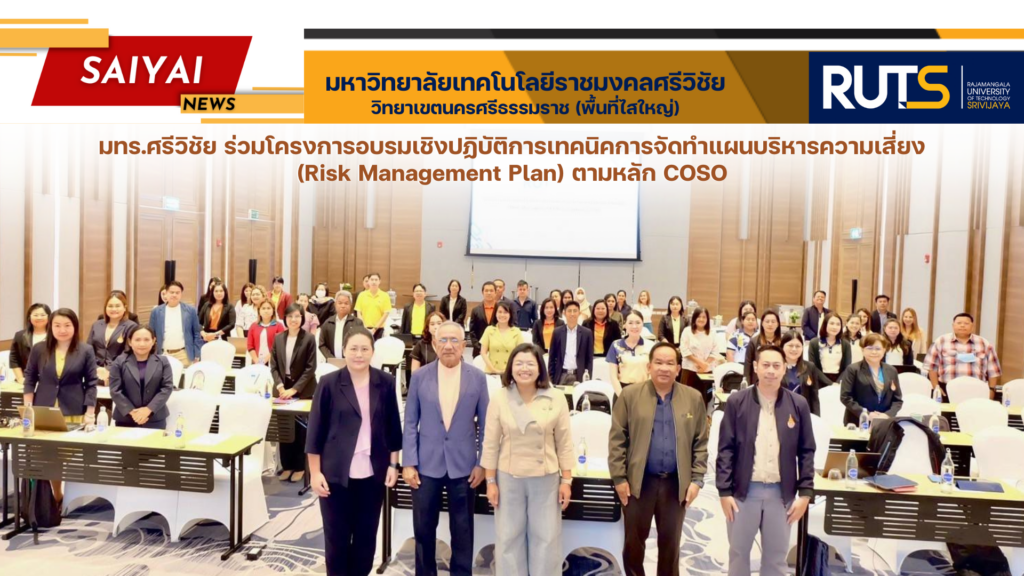 วันที่ 3 กุมภาพันธ์ 2568 ศาสตราจารย์ ดร. สุวัจน์ ธัญรส อธิการบดี มหาวิทยาลัยเทคโนโลยีราชมงคลศรีวิชัย ได้มอบหมายให้ผู้ช่วยศาสตราจารย์ ดร.ขวัญหทัย ใจเปี่ยม รองอธิการบดีประจำวิทยาเขตนครศรีธรรมราช เป็นประธานในพิธีเปิดโครงการอบรมเชิงปฏิบัติการเทคนิคการจัดทำแผนบริหารความเสี่ยง (Risk Management Plan) ตามหลัก COSO กำหนดจัดขึ้นระหว่างวันที่ 3 – 4 กุมภาพันธ์ 2568 ณ ห้อง Naka ballroom โรงแรมดุสิตปริ๊นเซสพัทลุง อำเภอเมืองพัทลุง จังหวัดพัทลุง โดยได้รับเกียรติจากคุณสุรพงษ์ ชูรังสฤษฎิ์ ผู้ตรวจสอบภายในรับอนุญาต วุฒิบัตรสากล CIA เป็นวิทยากรในครั้งนี้