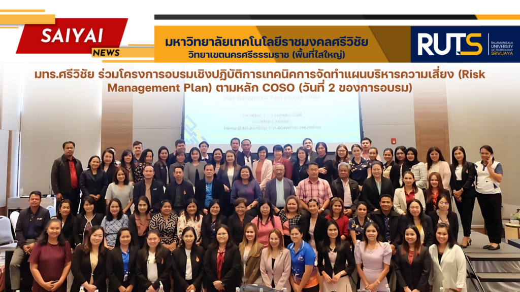 มทร.ศรีวิชัย ร่วมโครงการอบรมเชิงปฏิบัติการเทคนิคการจัดทำแผนบริหารความเสี่ยง (Risk Management Plan) ตามหลัก COSO (วันที่ 2 ของการอบรม)