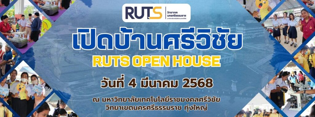 วันที่ 4 มีนาคม 2568 ผู้ช่วยศาสตราจารย์ ดร.ขวัญหทัย ใจเปี่ยม รองอธิการบดีประจำวิทยาเขตนครศรีธรรมราช มหาวิทยาลัยเทคโนโลยีราชมงคลศรีวิชัย เป็นประธานโครงการเปิดบ้านศรีวิชัย RUTS Open House จัดขึ้น ณ มหาวิทยาลัยเทคโนโลยีราชมงคลศรีวิชัย วิทยาเขตนครศรีธรรมราช พื้นที่ทุ่งใหญ่ โดยมีคณะผู้บริหาร อาจารย์และบุคลากร พร้อมด้วยนักเรียน นักศึกษา โรงเรียนกลุ่มเป้าหมายเข้าร่วมโครงการในครั้งนี้