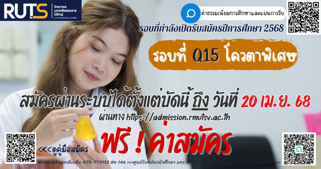 มหาวิทยาลัยเทคโนโลยีราชมงคลศรีวิชัย วิทยาเขตนครศรีธรรมราช พื้นที่ไสใหญ่ เปิดรับสมัครนักศึกษา ปีการศึกษา 2568