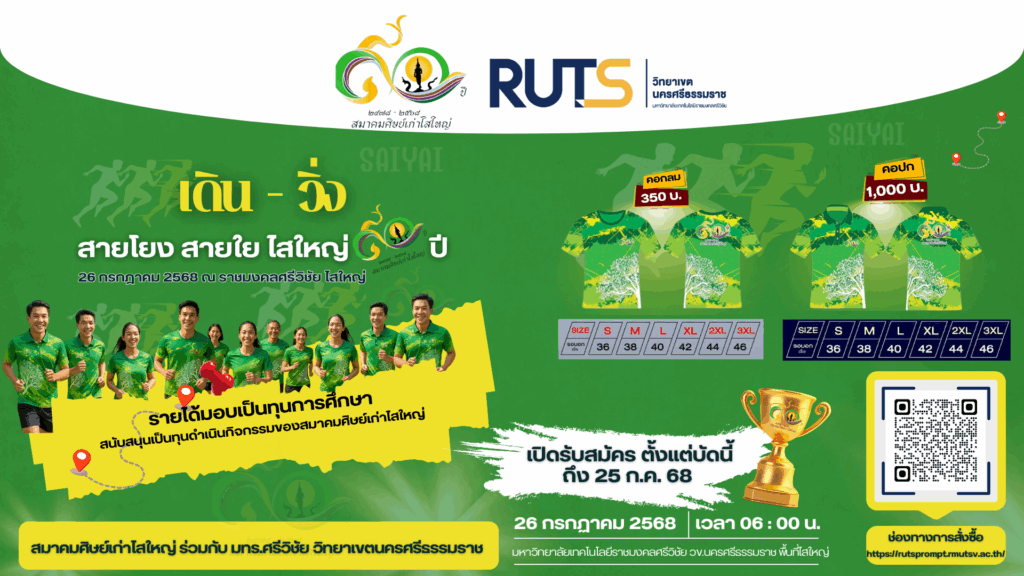 แล้วพบกัน 26 กรกฎาคม 2568 เวลา 06.00 น. ณ มหาวิทยาลัยเทคโนโลยีราชมงคลศรีวิชัย วิทยาเขตนครศรีธรรมราช ไสใหญ่