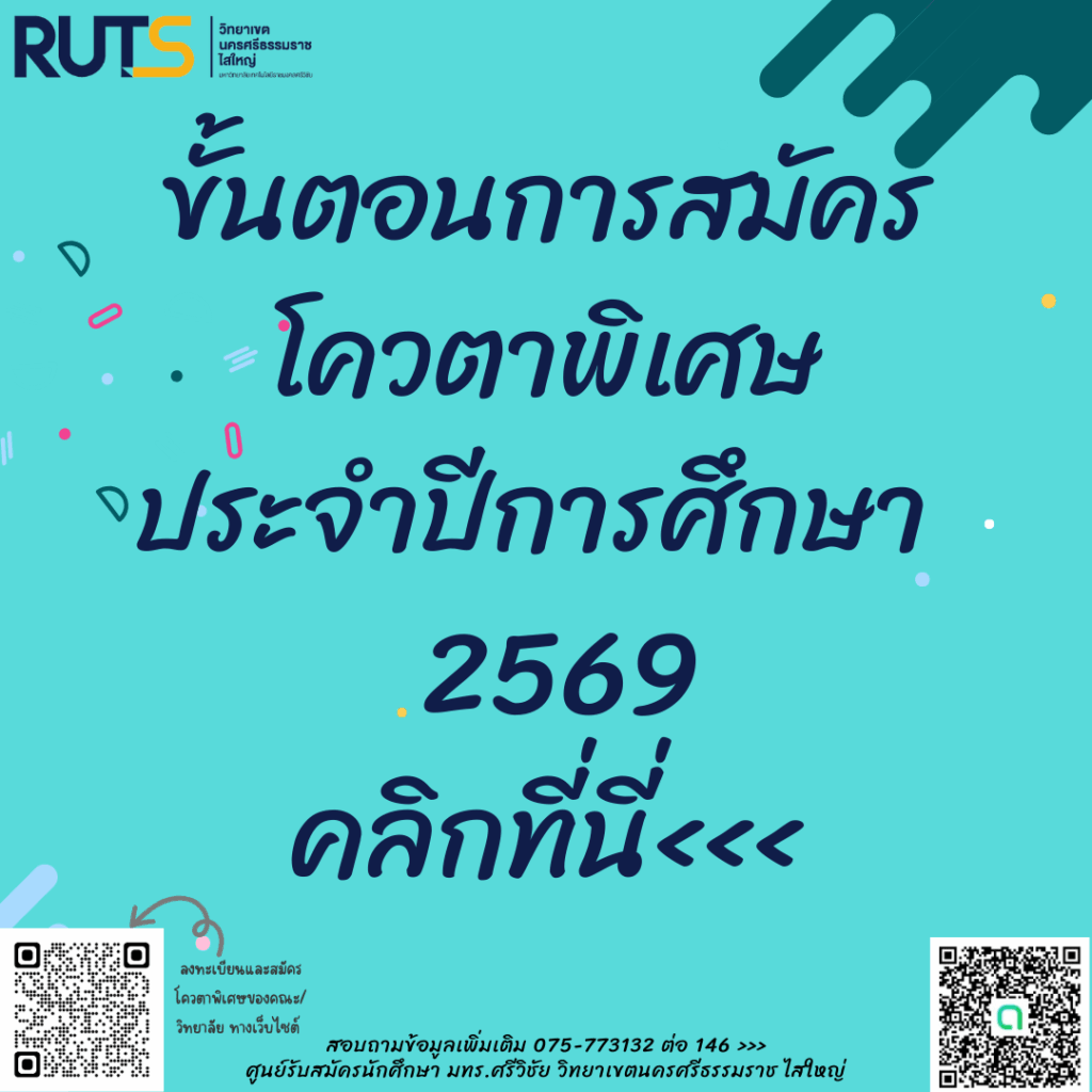 คู่มือการสมัครโควตาพิเศษดังรายละเอียดด้านล่าง หรือ คลิกที่นี่…<<< เพื่อดูขั้นตอนและแผนการรับสมัคร