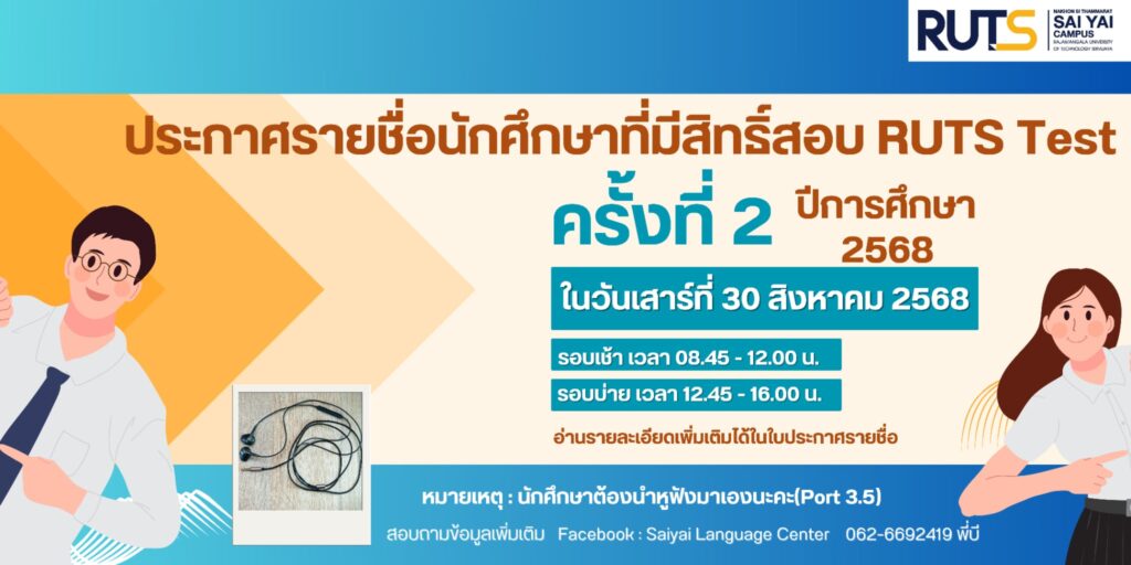 ประกาศรายชื่อนักศึกษาที่มีสิทธิ์สอบการทดสอบสมรรถนะทางด้านภาษาต่างประเทศ ครั้งที่ 2/2568 ในเสาร์ที่ 30 สิงหาคม 2568 ดาวน์โหลดรายละเอียดด้านล่าง