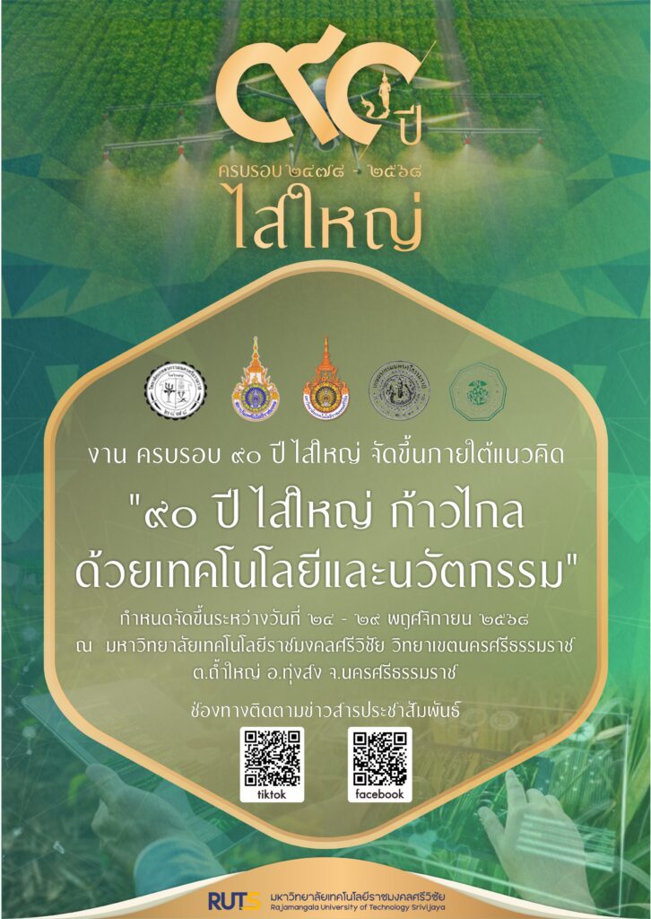 ณ มหาวิทยาลัยเทคโนโลยีราชมงคลศรีวิชัย วิทยาเขตนครศรีธรรมราช พื้นที่ไสใหญ่ ต.ถ้ำใหญ่ อ.ทุ่งสง จ.นครศรีธรรมราช