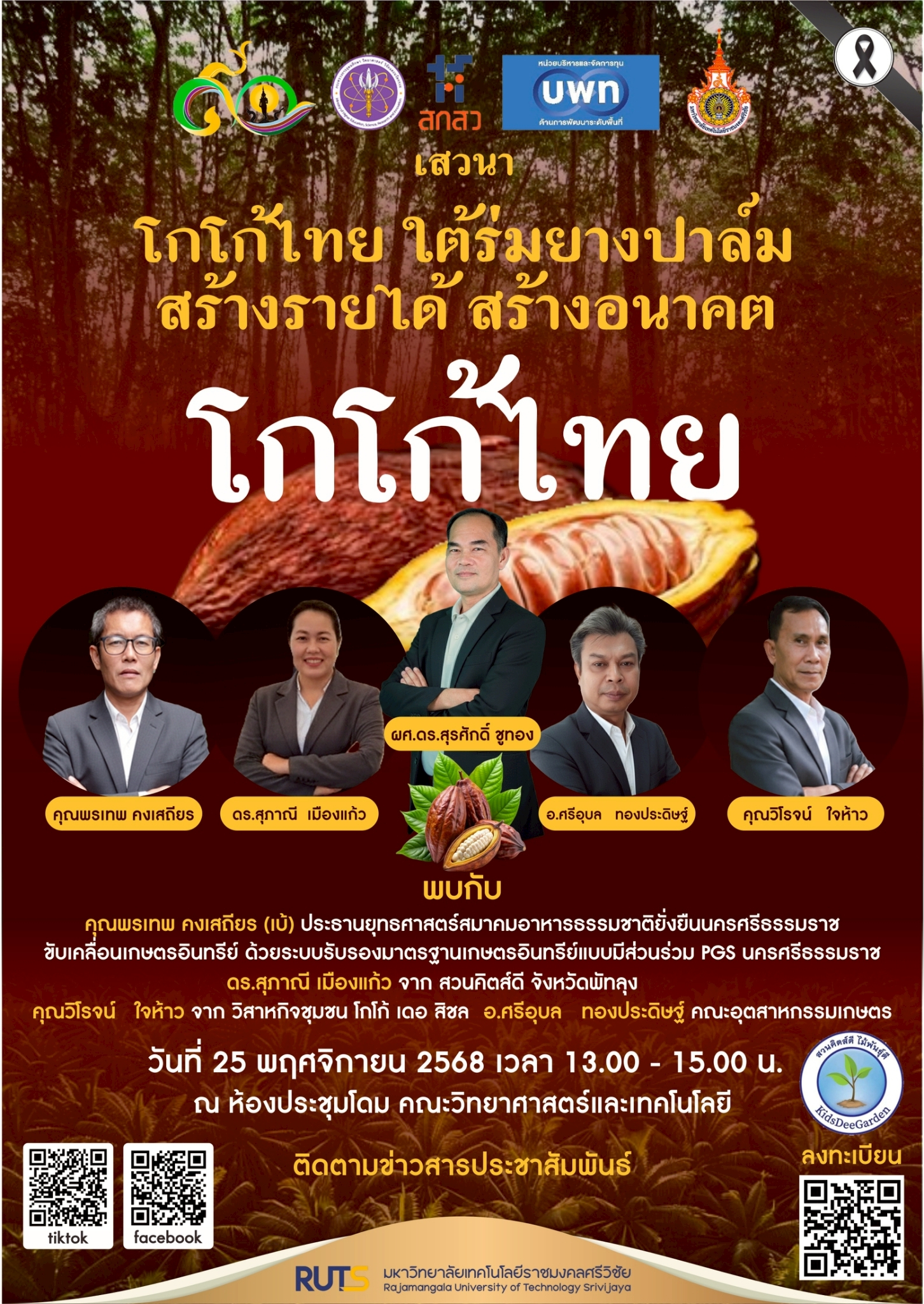 👉 ขอเชิญผู้สนใจเข้าร่วมรับฟังเสวนา #โกโก้ไทยใต้ร่มยางปาล์มสร้างรายได้สร้างอนาคต ภายในงาน 90 ปี ไสใหญ่