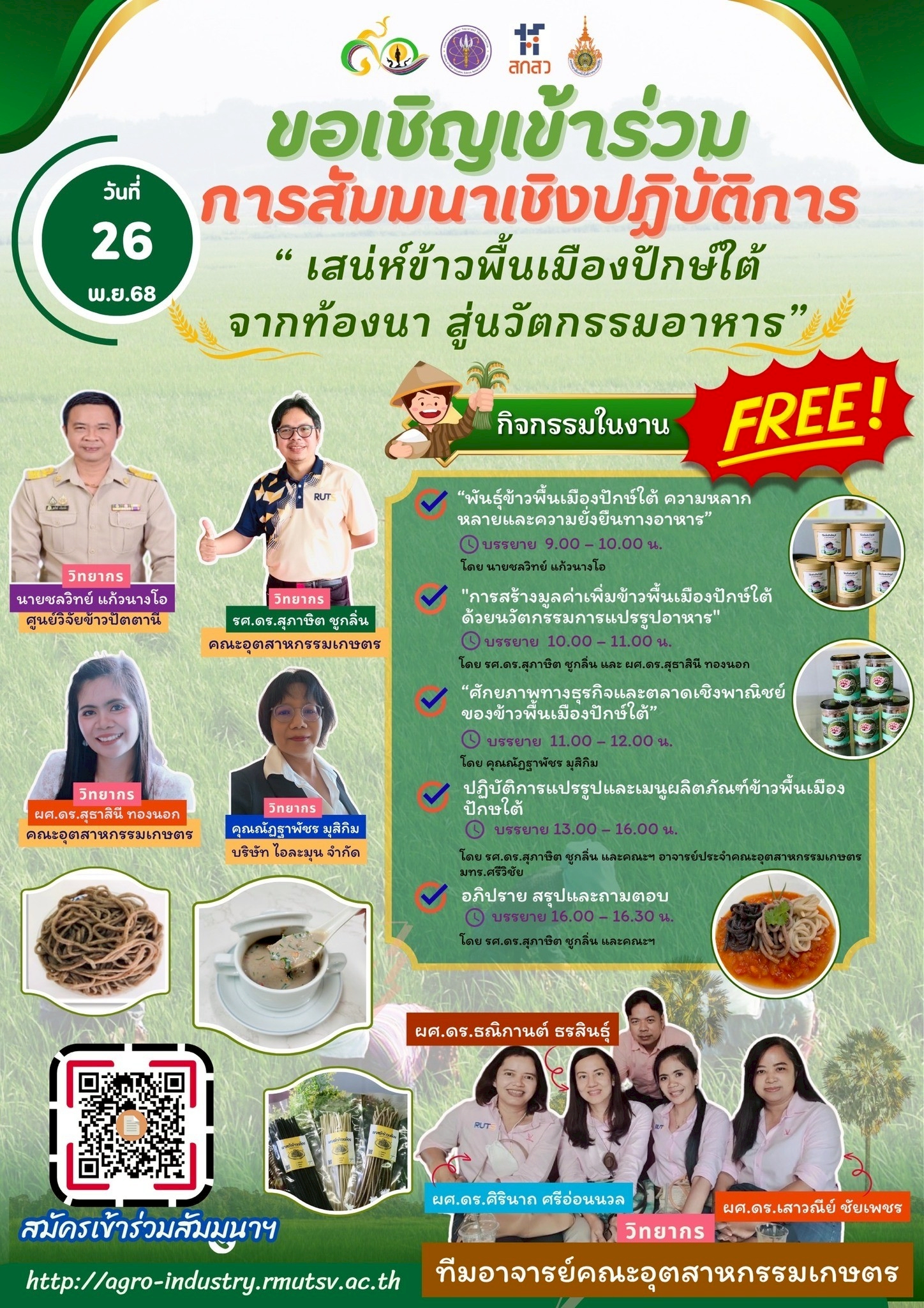 ลงทะเบียนฟรีได้ที่ ลิงก์ … https://url.rmutsv.ac.th/txz6x