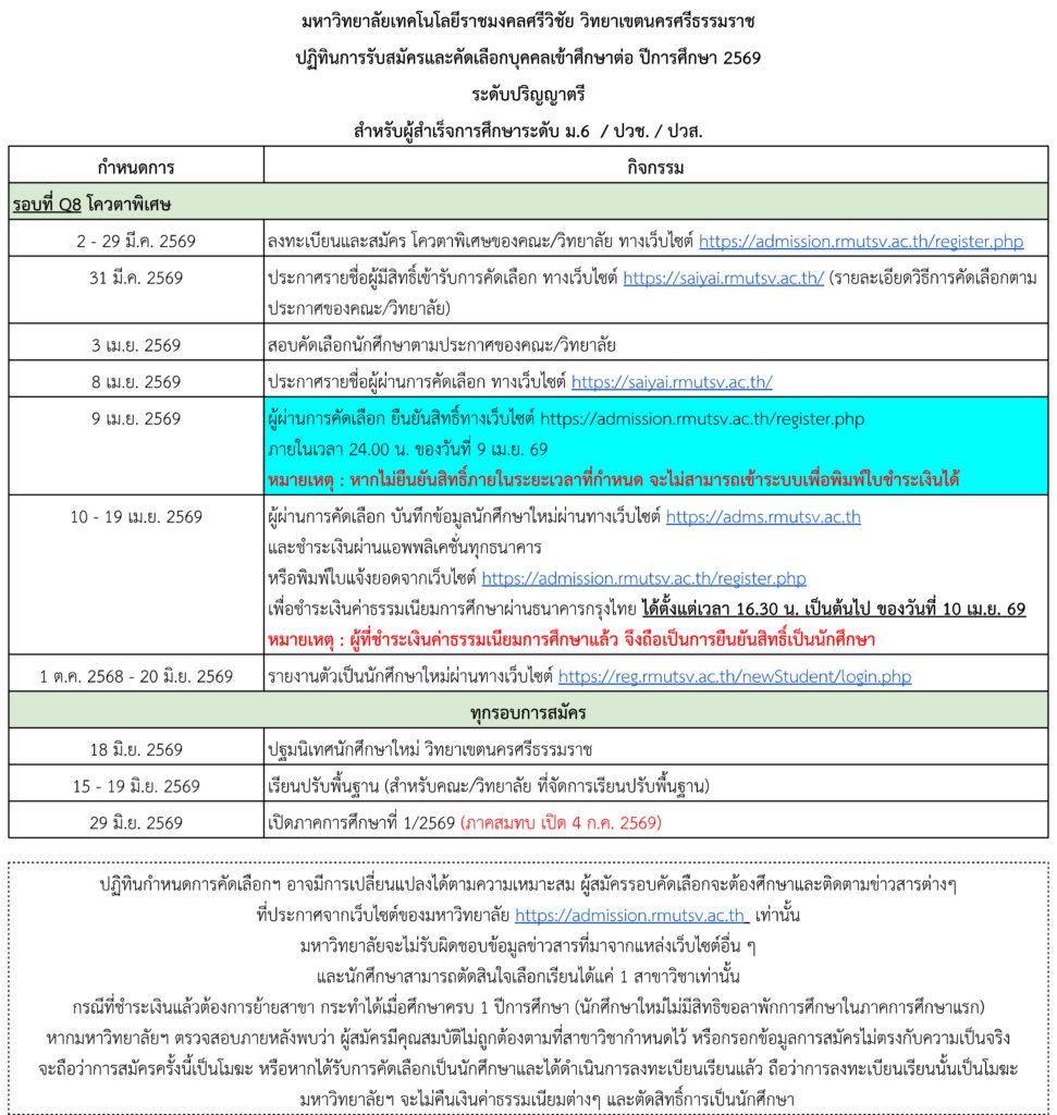 สามารถสมัครเรียนได้ตั้งแต่ 2 – 29 มี.ค. 69 ผ่านทาง https://admission.rmutsv.ac.th/register.php